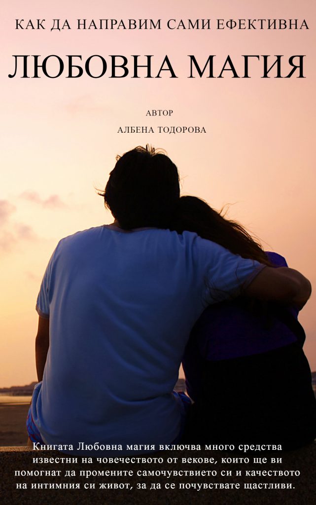Ако имате проблеми в интимния си живот, ако не успявате да възстановите хармонията във връзката, ако партньорът ви не ви обръща необходимото внимание, или никога не успявате да намерите подходящия партньор тази книга е точно за вас. Тя включва много средства известни на човечеството от векове, които ще ви помогнат да промените самочувствието си и интимния си живот, за да се почувствате щастливи. Ако решите да събирате сами тази информация това ще ви коства много време, усилия и средства. Подробно са описани необходимите материали, заклинанията и пълните ритуали за да направите сами любовна магия на избран от вас човек. Посочени са и дните и часовете в който след като направите вашата магия тя ще действа възможно най ефективно и бързо. Това е книга, който може да промени живота ви завинаги. За да изтеглите книгата с действаща любовна магия, моля извършeте плащане, за да получите моментален достъп до файла на книгата в електронен (pdf) формат.